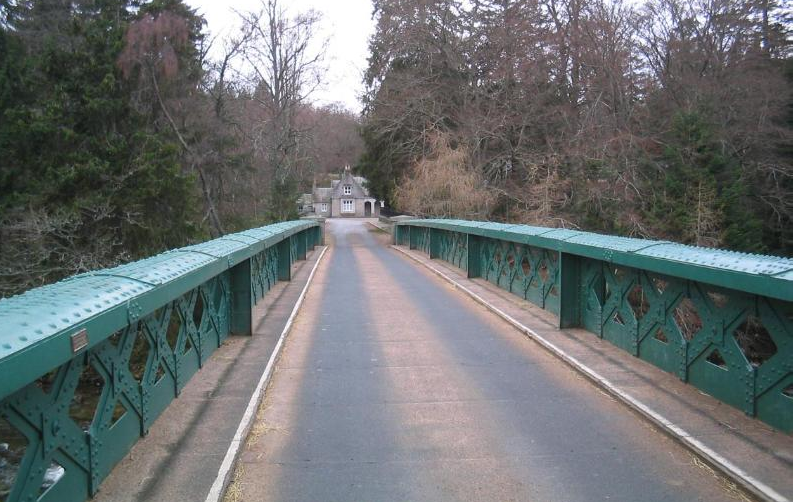 There occurred a violent storm of force 10 – 11 on the Beaufort scale (wind speeds up to 72 mph), with westerly winds surging across Scotland, on 28th December 1879.  One casualty was the new rail bridge across the river Tay at Dundee, which collapsed while a train was crossing, at least partially due to wind stress, killing all the passengers and crew.  Another was the felling of about 380 mature Scots pines in the Ballochbuie forest.  A further 60 trees were brought down in the nearby Garmaddie woods, both locations by that year being part of the Balmoral estate.  While Queen Victoria wanted to preserve the Ballochbuie and allow its use for deer stalking, the trees were valuable, and arrangements were made for the installation of a portable steam sawmill in the Ballochbuie to salvage the fallen timber.  The new sawmill was in operation by mid-April 1880.  In addition to the sawmill, a new bridge was constructed over the river Dee at the foot of the Ballochbuie forest, about five miles west of the castle and joining the north Deeside road.  The bridge was in operation during the following August.  A report of these developments in the Aberdeen Journal described the new structure as follows.  “The bridge which is a most substantial wooden structure has massive abutments of solid masonry at each end, the dividing piers being laid in solid concrete foundations stoutly protected.”  The sawmill generated a lot of heavy traffic which would otherwise have compromised the tranquillity and privacy of the Royal family, when in residence, by its passage through the estate on the south side of the river.